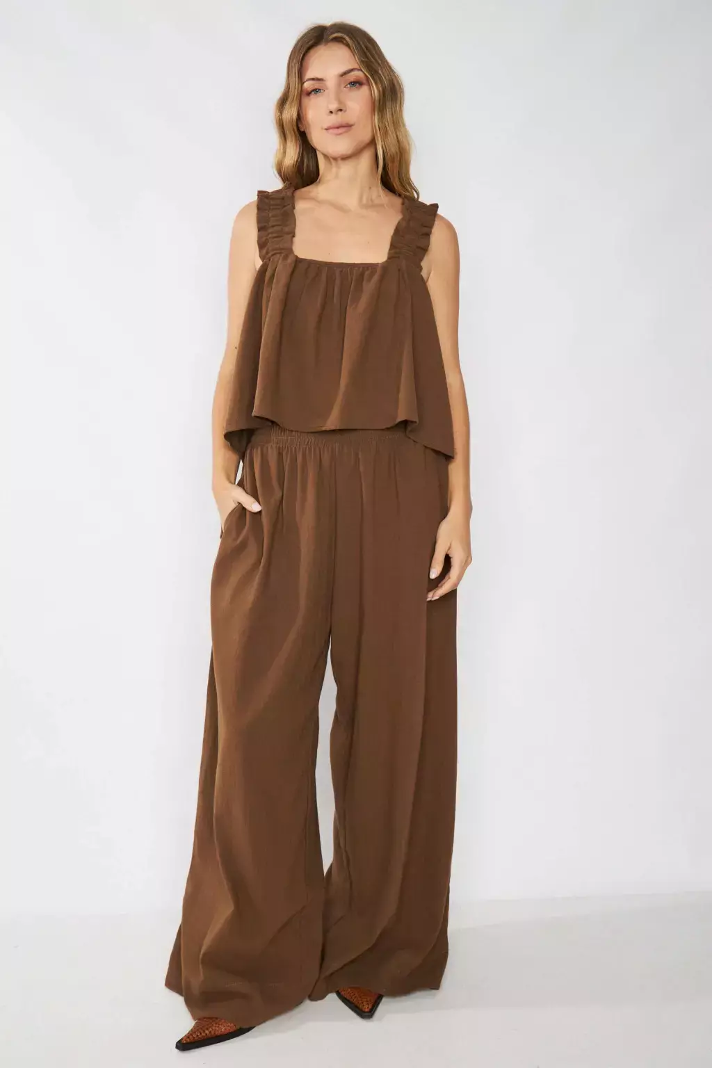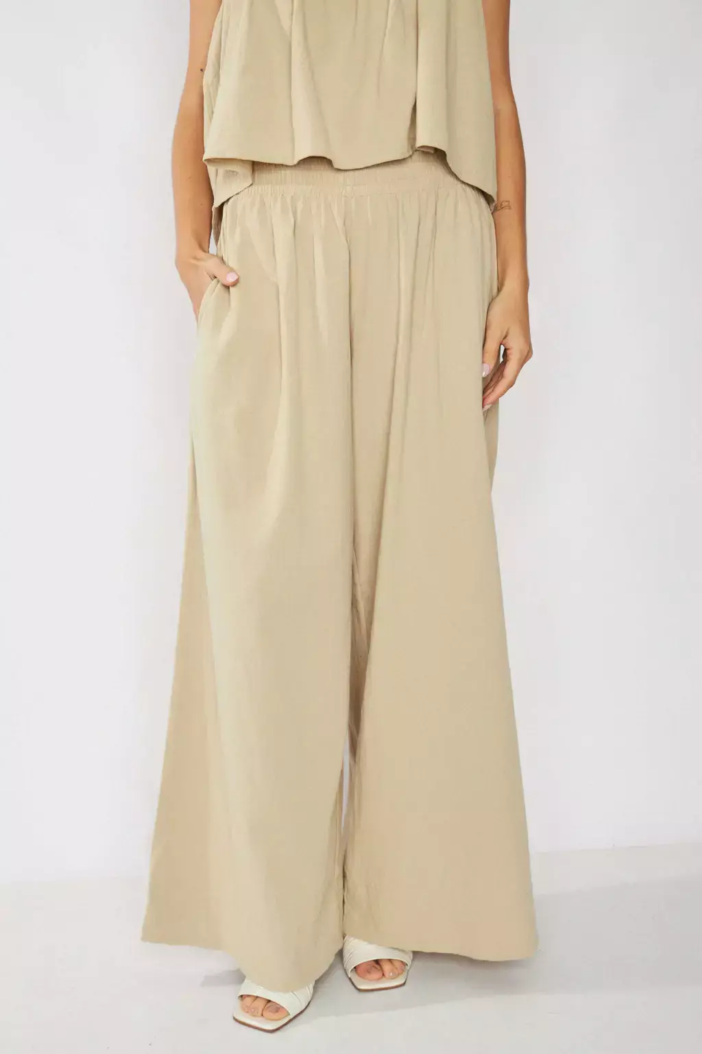 Pantalón confeccionado en lino, con diseño súper amplio y elástico en cintura para un calce cómodo y relajado. Una prenda versátil e ideal para lookear con la blusa San Francisco y armar un conjunto canchero y moderno.